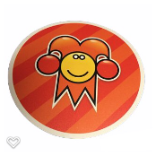 Officiële Kielegat® sticker met de mooie nar van het Kielegat. Diameter 80mm met oranje /rood gestreepte achtergrond.